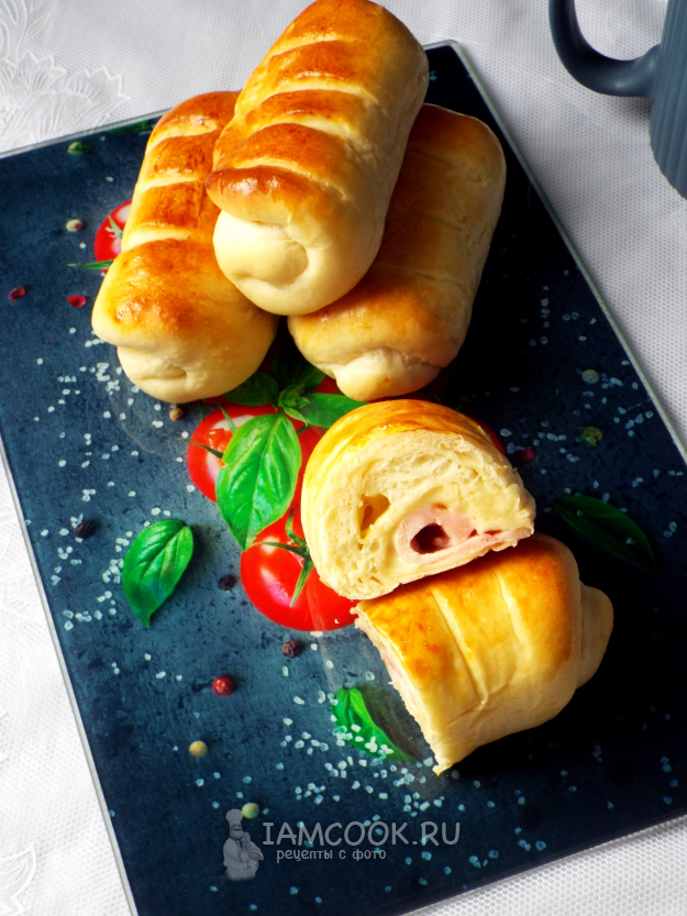 Булочки с ветчиной и сыром готовы.