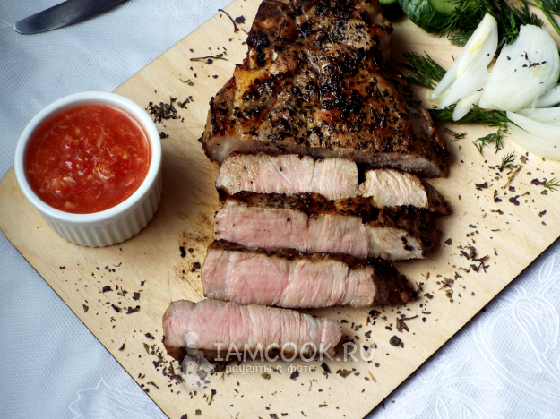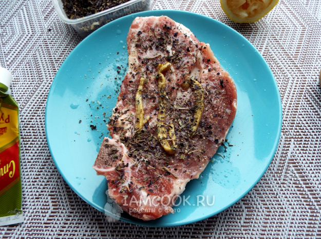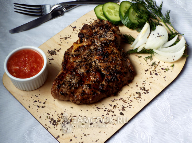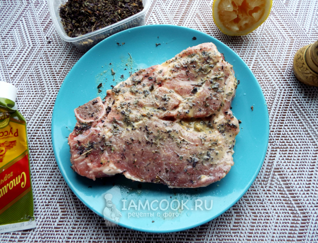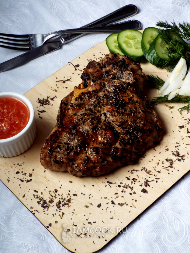 Совсем недавно стала замечать в продаже стейки свиной шеи с небольшой косточкой. Еще их называют котлетой.