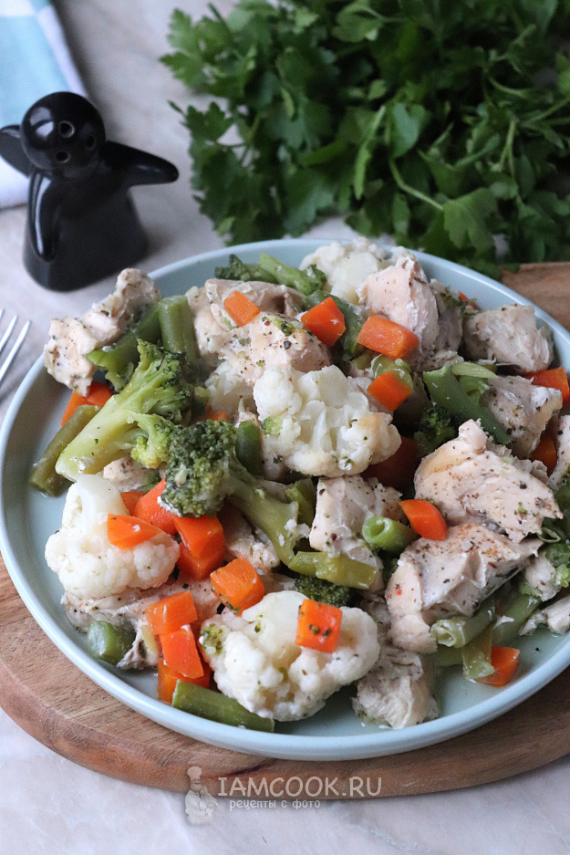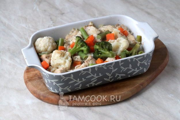 Вот и всё, куриное филе в духовке с замороженными овощами готово. Мясо и овощи получаются очень вкусными, сочными и малокалорийными.