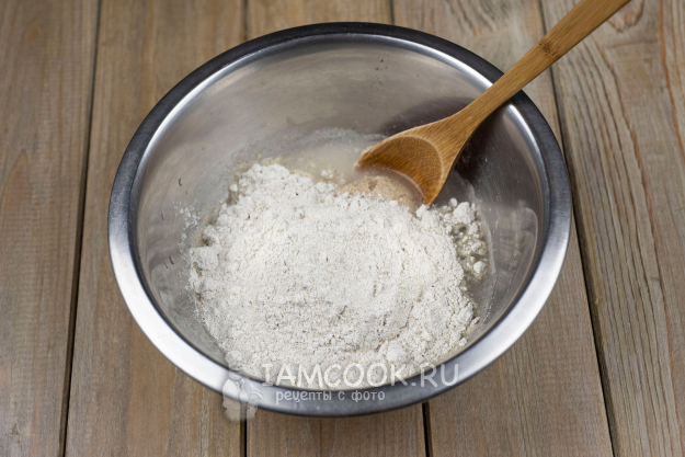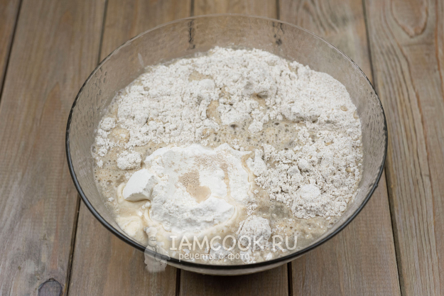 К этой смеси засыплем 38 г ржаной обдирной муки.