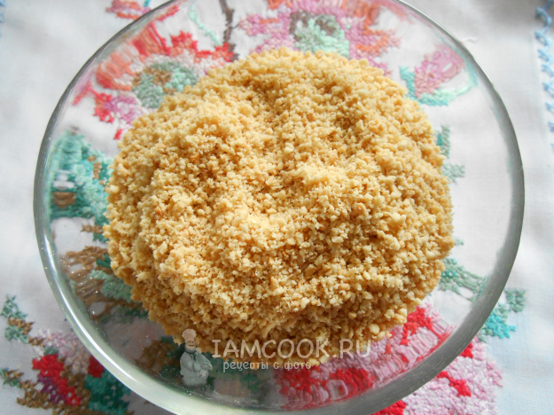 Теперь сделаем крошку из арахиса, в любом измельчителе. Примерно такую, как на фото.