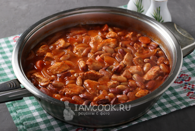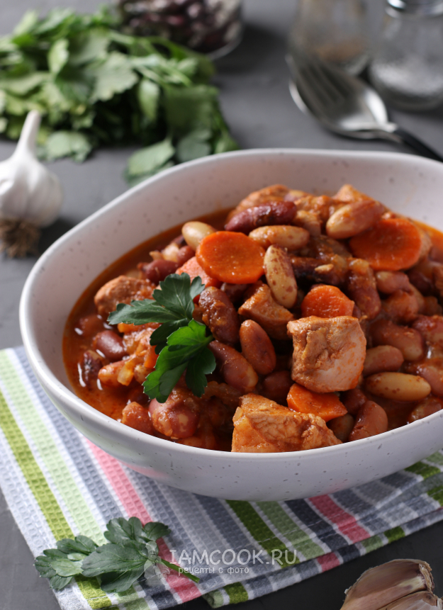 Подать индейку с фасолью в томатном соусе к столу, разложив по порциям.