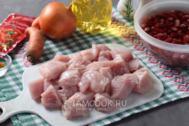 Для приготовления филе индейки с фасолью в томатном соусе нам понадобятся такие ингредиенты.
