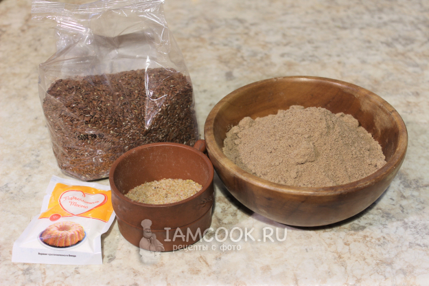 Подготовим все необходимые ингредиенты для приготовления безглютенового хлеба из льняной муки без дрожжей и пшеничной муки.