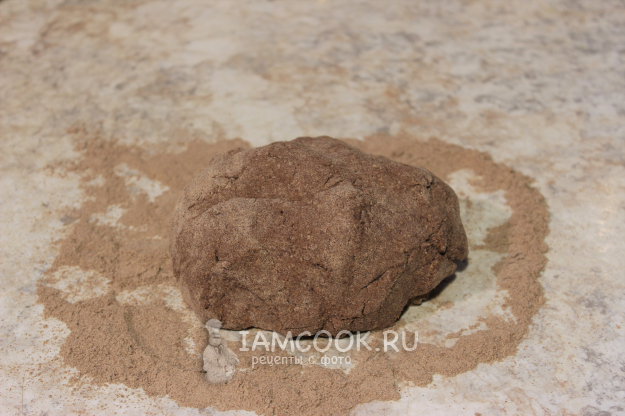 Замешиваем тесто, тесто получится мягким и рассыпчатым, немного липким (ничего общего с обычным тестом из пшеничной муки). Собираем тесто в шар и немного вымешиваем, обваливая комок теста в льняной муке.