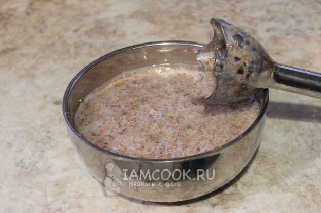 Затем измельчаем семена льна вместе с жидкостью в кашицу. Получится густая тягучая масса.