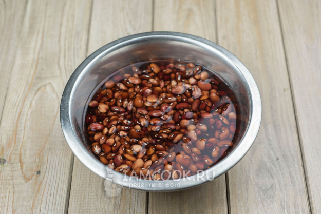 Фасоль обязательно следует замочить, лучше всего на ночь.