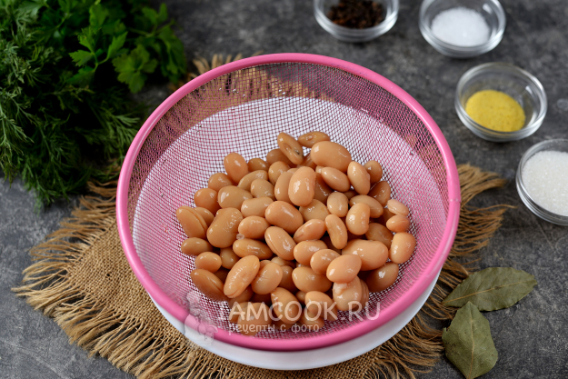 Фасоль откиньте на дуршлаг, промойте под проточной водой.