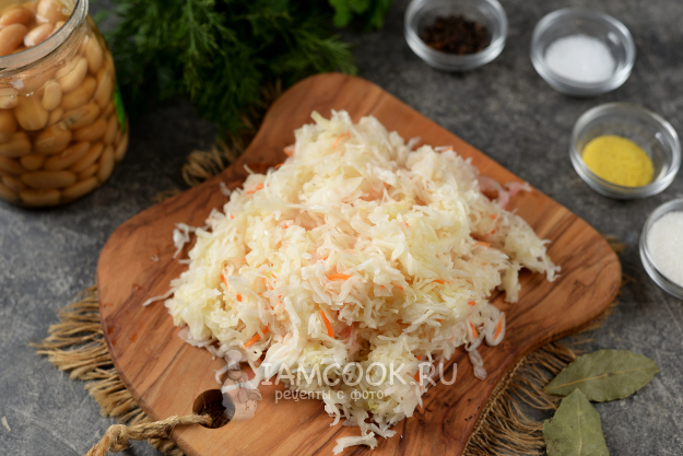 Кислую капусту обязательно немного порежьте, так в готовом борще ее будет удобнее есть. Переложите капусту в кастрюлю, варите около 10 минут.