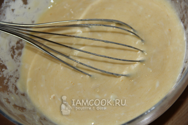 Перемешать тесто до однородности. По консистенции тесто напоминает тесто на оладьи.