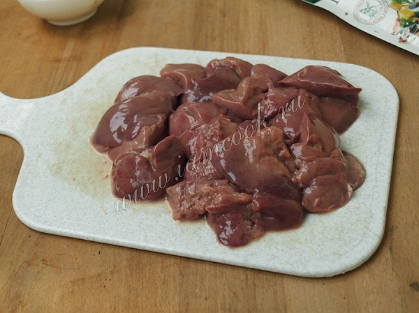 Печень следует хорошо промыть под холодной проточной водой и затем удалить все плёночки. Крупные куски печени разрезать.