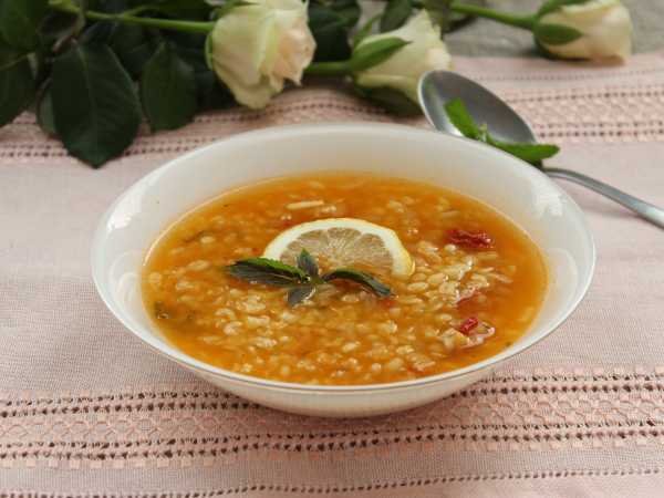 Разлить суп с булгуром и говядиной в тарелки и подать к столу.