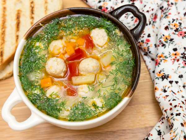 Варить суп до готовности картофеля, попробовать на вкус: если вдруг мало соли - добавить. Кастрюлю с супом снять с огня и оставить настояться под крышкой 10-15 минут.