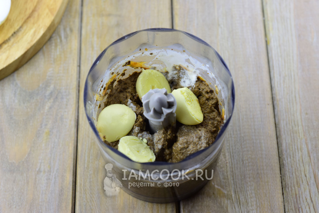 Включим блендер на 30 секунд. Грибная начинка для фаршировки яиц готова.
