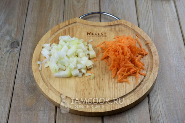 Лук мелко нашинкуем, морковь натрем на крупной терке.