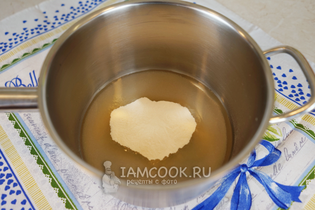 Начинаем приготовление нашего зефира с того, что отправляем в сотейник с толстым дном 170 гр. сахара, 60 мл воды и 10 гр. агар-агара. Для того чтобы зефир получился плотненьким, нам необходим агар-агар 900 (можно больше – 1000 или 1200). Перемешиваем и отставляем в сторону замачиваться на 10-15 минут.