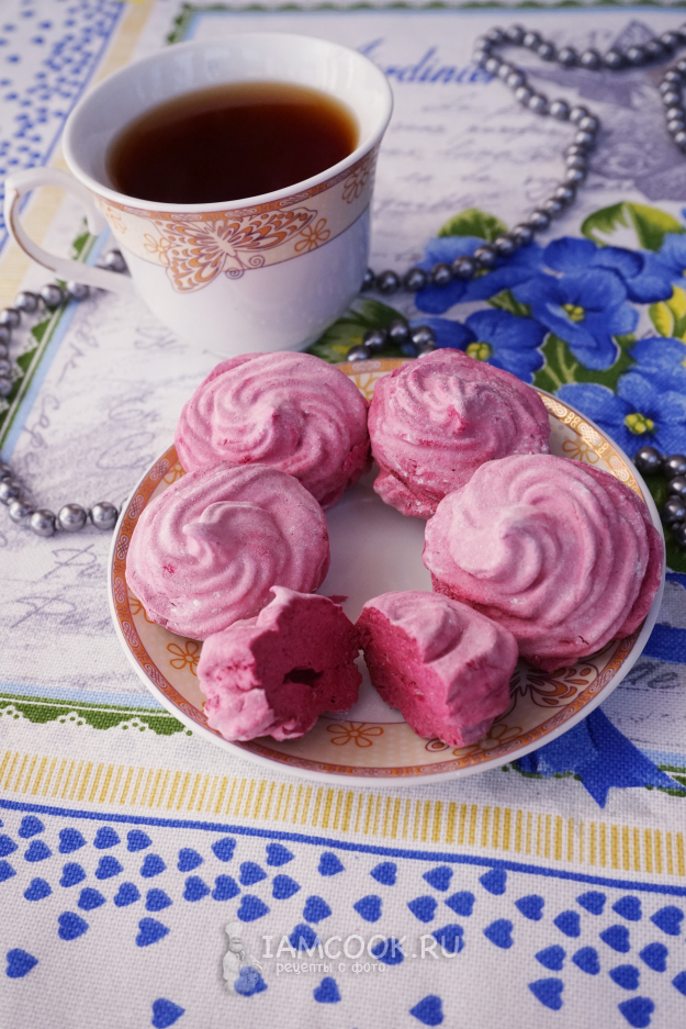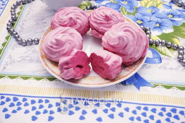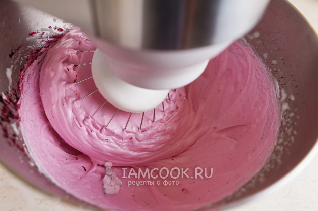 Так же порционно вводим джем во взбивающуюся массу. В идеале джем должен быть без семян, тогда зефир получится красивым и однородным.