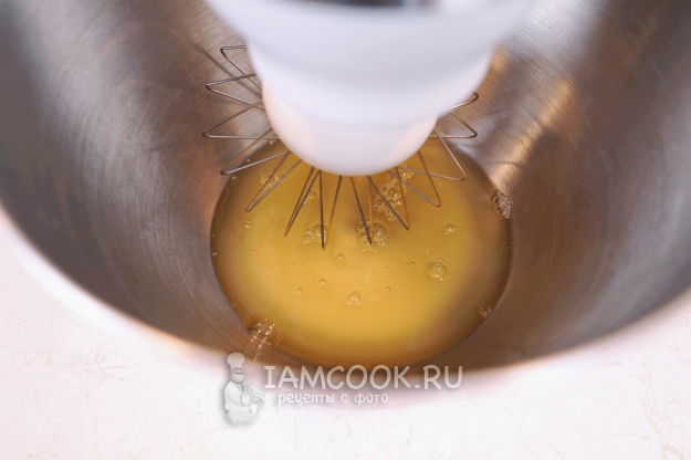 Затем переливаем 100 мл рассола в ёмкость для взбивания и на максимальной скорости кухонного комбайна (миксера) начинаем взбивать. Масса увеличивается прямо на глазах, становится плотной белой пеной. Взбивать её нужно на максимальных оборотах постоянно, не останавливая комбайна – включили, а сами дальше занимаемся сиропом.
