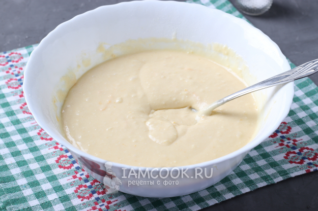 Ещё раз тесто тщательно перемешать. Консистенция - как сметана средней густоты.