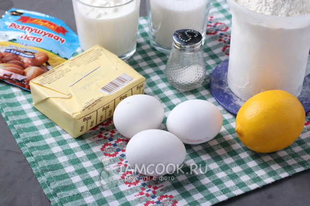 Для приготовления лимонного пирога на сметане подготовить из списка необходимые ингредиенты.