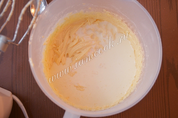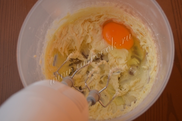 Продолжая взбивать, добавить яйцо.
