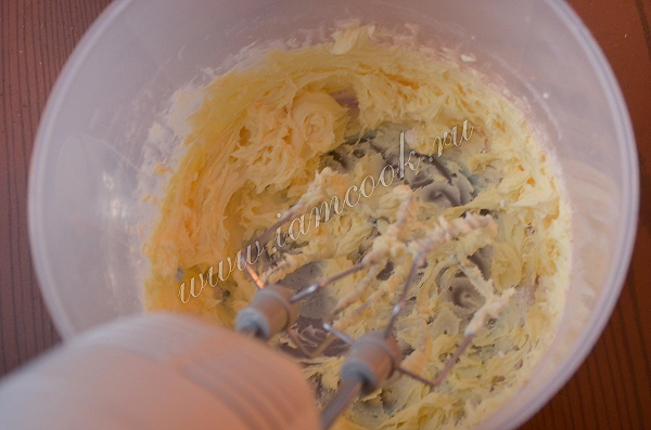 Мягкое сливочное масло взбивать 3-4 минуты, постепенно добавляя сахарную пудру.