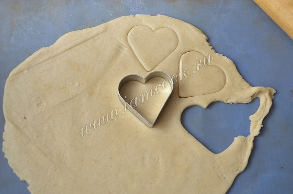 Затем раскатать тесто толщиной примерно 1 см., вырезать печенье.