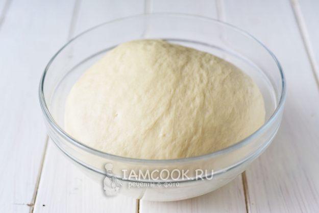 Замесим руками мягкое, не липкое тесто, округлим его в миске, смазав растительным маслом поверхность, затянем миску пищевой пленкой, оставим в комнатных условиях на час подходить.