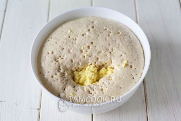 Опара подошла - она заметно увеличилась в размерах и приобрела пористую структуру.