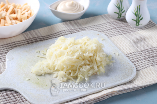 Почистить яблоко, нарезать его соломкой и сбрызнуть лимонным соком.
