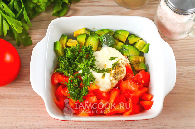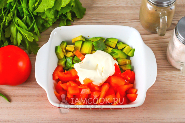 Если вы будете создавать начинку заранее, то нарезку авокадо сбрызните лимонным соком, чтобы она не потемнела.