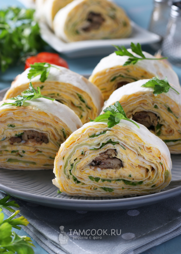 Готовый рулет из лаваша со шпротами и огурцом можно подавать сразу, разрезав на кусочки 1.5-2 см. Можно до подачи завернуть рулет в пищевую плёнку и убрать в холодильник.