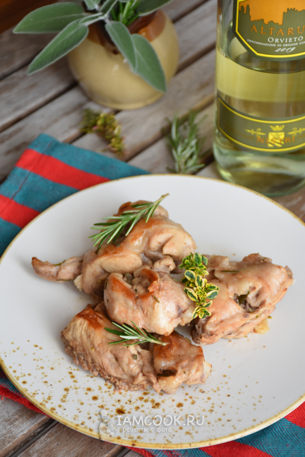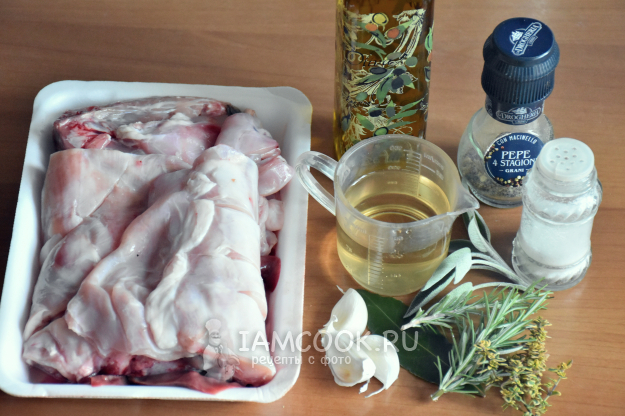 Для приготовления тушеного кролика в белом вине нам понадобятся следующие ингредиенты.