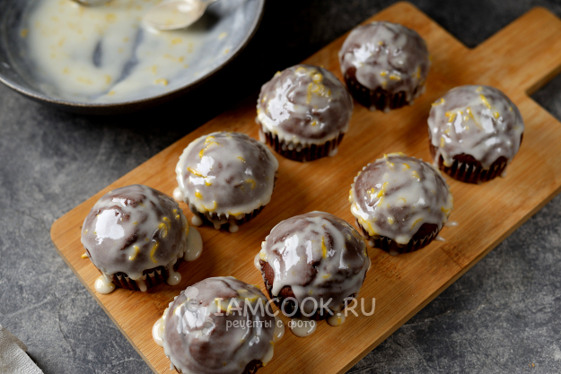 И сразу же нанесите глазурь на приготовленные заранее и остывшие кексы. Наносить глазурь можно в несколько слоев. Дайте ей застыть в течение нескольких часов.