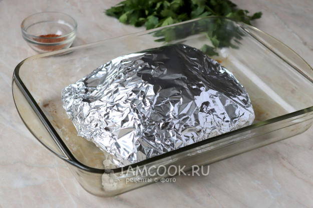 Затем аккуратно, чтобы не обжечься паром, разрежем фольгу и будем запекать ещё 10-15 минут. Если позволяет духовка, можно включить верхний нагрев.