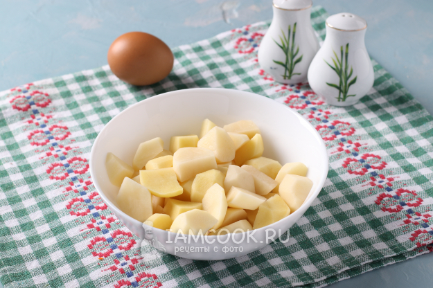 Картофель почистить и нарезать кубиком.