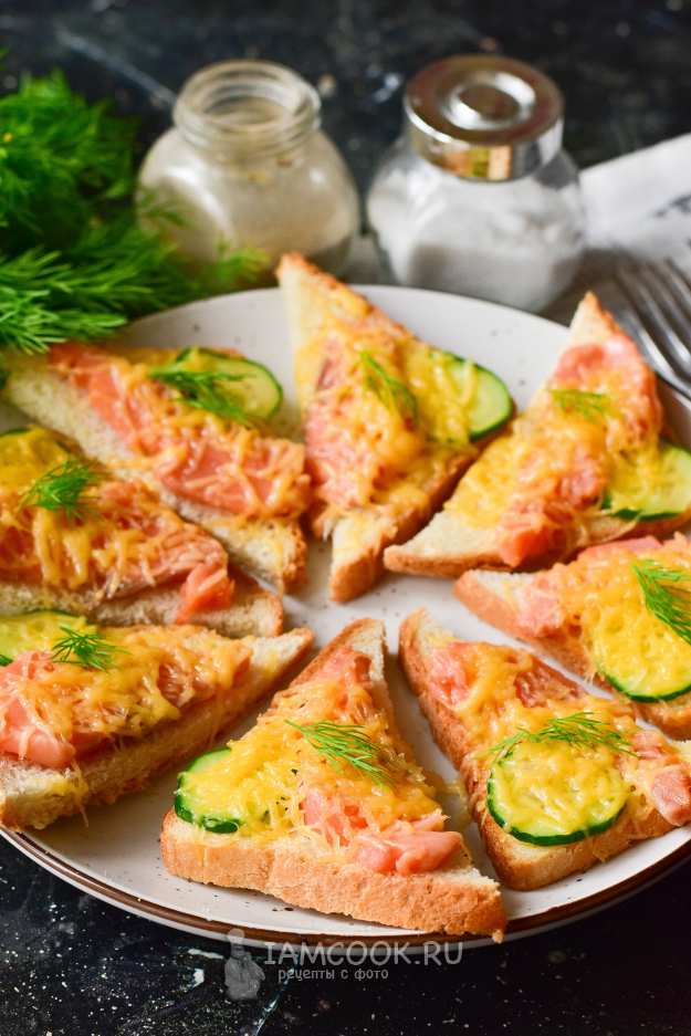 Вот такие горячие бутерброды с горбушей и сыром в духовке вышли!