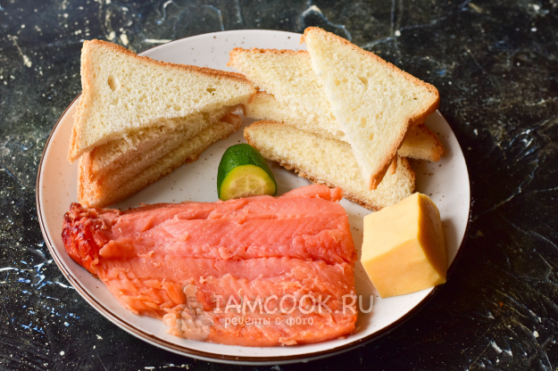 Возьмите ингредиенты для приготовления горячих бутербродов с горбушей и сыром в духовке.