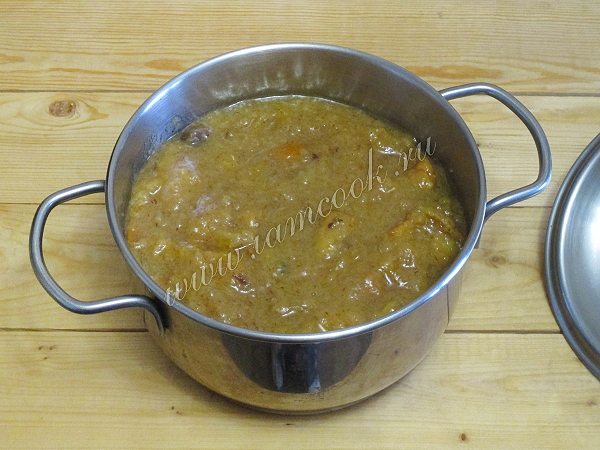 Доведите до закипания, а потом варите на среднем огне около 30-40 минут при помешивании. Выглядит эта субстанция в кастрюле (при неладном освещении), конечно, не особо, но вкусно очень)))