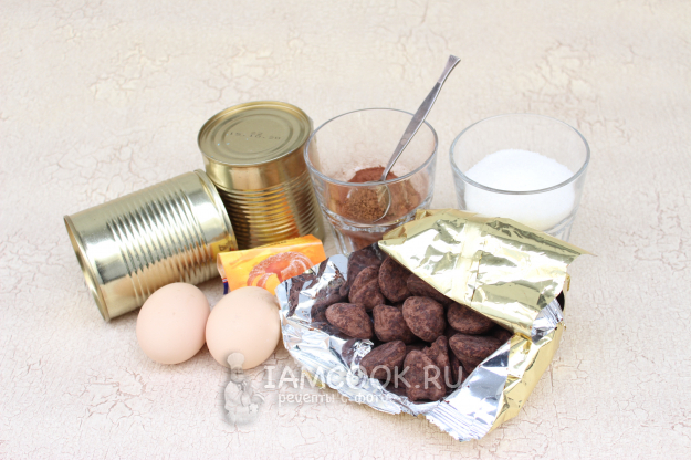 Возьмём необходимые ингредиенты для приготовления шоколадного фасолевого торта из консервированной фасоли.