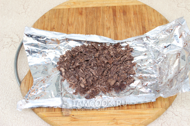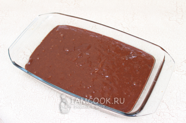 Выливаем шоколадную смесь в форму, смазанную растительным маслом. У меня форма прямоугольная, размер - 22x14 см, или подойдет круглая форма диаметром в 20 см.