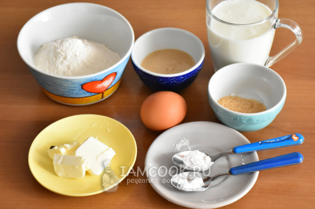 Муку перемешать с разрыхлителем и содой, просеять в миску.