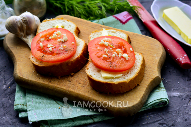 Присыпьте бутерброды мелко нарезанным чесноком.