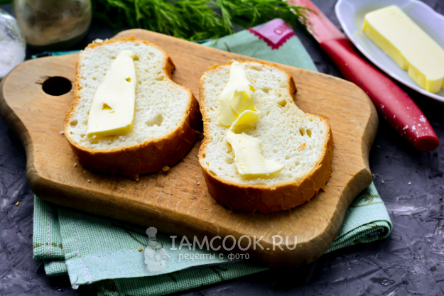 На каждый ломтик хлеба выложите по небольшому кусочку сливочного масла.