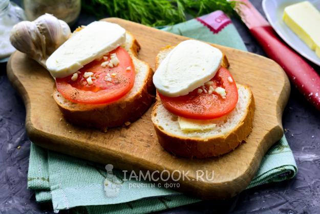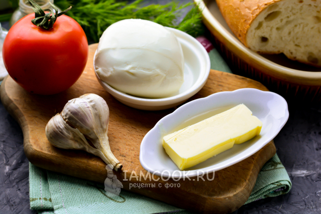 Возьмите все ингредиенты по списку и приступайте к готовке горячих бутербродов с моцареллой и помидорами.