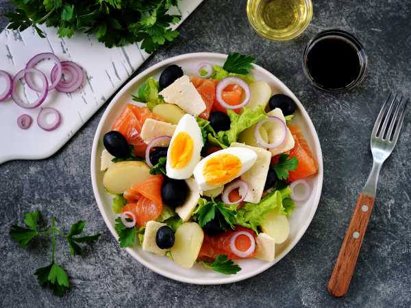 Добавьте в салат майонез, посолите и поперчите по вкусу, перемешайте.