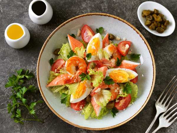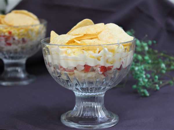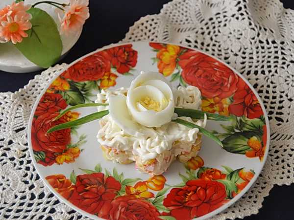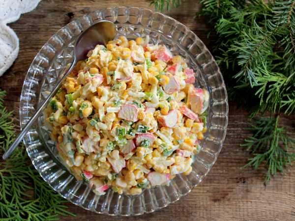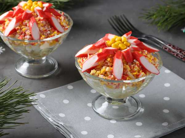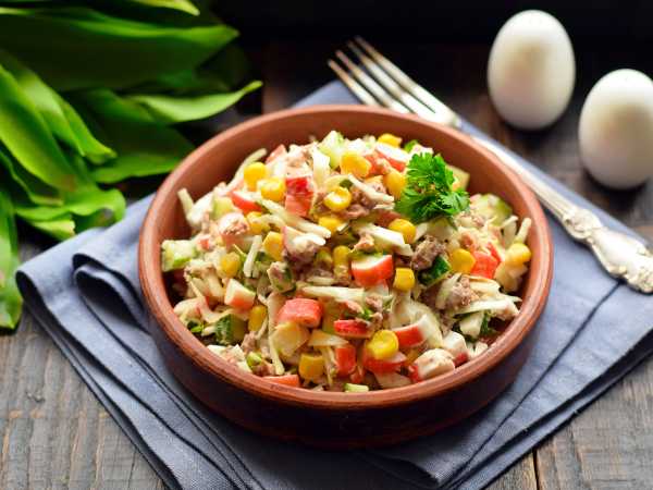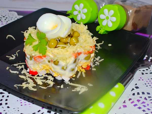 Салат с крабовыми палочками и грецким орехом готов. К столу подавайте в охлажденном виде. Приятного вам аппетита!