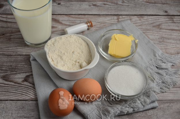 Возьмите все необходимые продукты для приготовления блинов на молоке как у бабушки - они простые и доступные.