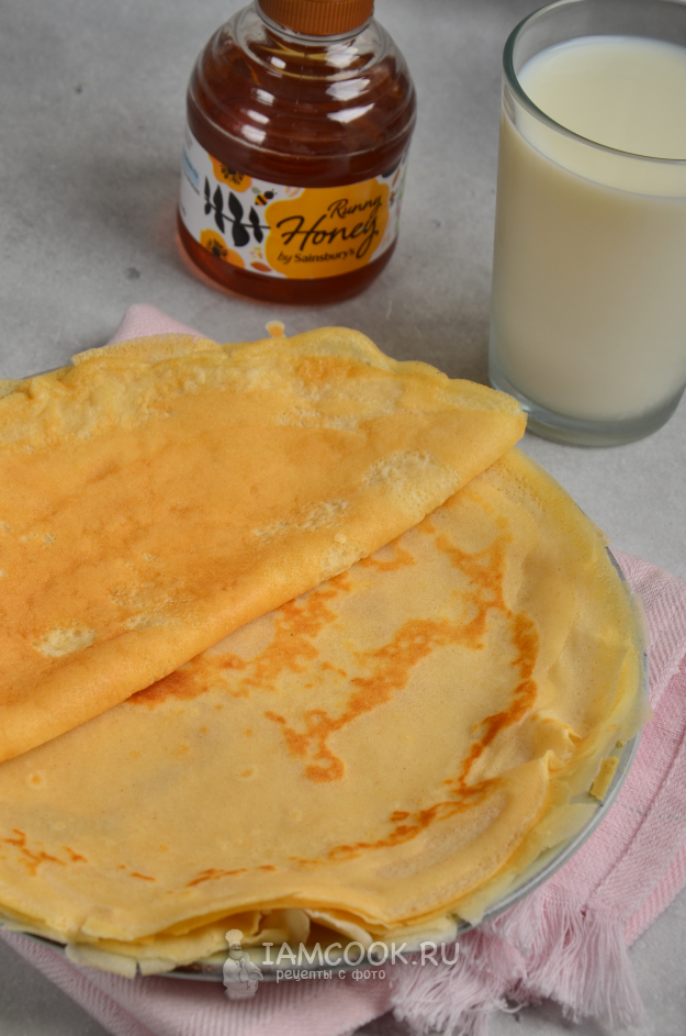 Подавать блины можно с молоком, медом. Приятного аппетита!