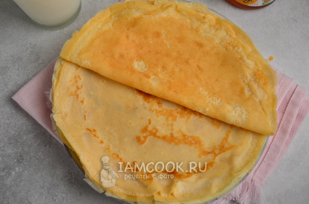 Готовые блины на молоке (как у бабушки) складывайте на тарелку стопочкой и каждый раз накрывайте крышкой.